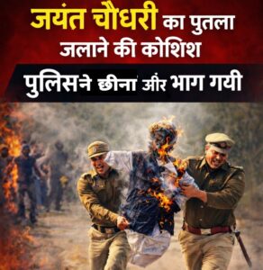 जयंत चौधरी का पुतला फूंकने की कोशिश नाकाम, पुतला छीनकर भागी पुलिस