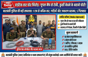 बाराबंकी। उत्तर प्रदेश की बाराबंकी पुलिस ने एक ऐसे शातिर गिरोह का पर्दाफाश किया है, जिसने अपराध के लिए तकनीक (गूगल मैप्स) और रेकी के पुराने पैंतरे (फेरी लगाना) का एक खतरनाक गठजोड़ तैयार किया था। जिले की स्वाट/सर्विलांस और थाना सफदरगंज की संयुक्त टीम ने कार्रवाई करते हुए इस अंतरराज्यीय गिरोह के 5 शातिर अपराधियों को गिरफ्तार किया है। इनके पास से एक टन से अधिक चोरी का तार और लग्जरी गाड़ियां बरामद हुई हैं।