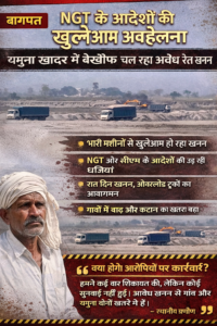 बागपत जिले में अवैध रेत खनन का मामला अब सीधे तौर पर प्रशासनिक जवाबदेही और कानून के राज पर सवाल खड़े कर रहा है। National Green Tribunal के स्पष्ट और सख्त आदेशों के बावजूद यमुना खादर क्षेत्र में भारी मशीनों से खुलेआम रेत खनन किया जा रहा है। हालात ऐसे हैं कि न सिर्फ एनजीटी के निर्देशों की अनदेखी हो रही है, बल्कि मुख्यमंत्री के आदेशों की भी खुलेआम धज्जियां उड़ती नजर आ रही हैं।